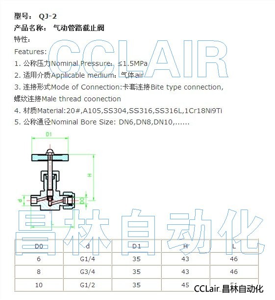 詳細(xì)信息 QJ-2,氣動管路截止閥