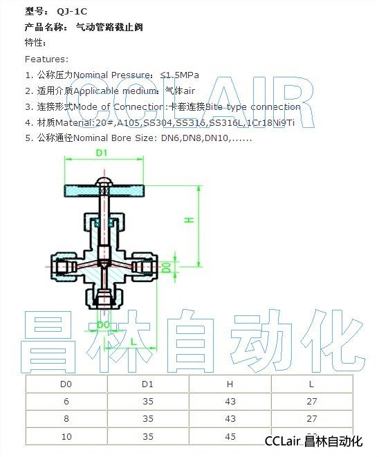 詳細(xì)信息 QJ-1C,氣動(dòng)管路截止閥