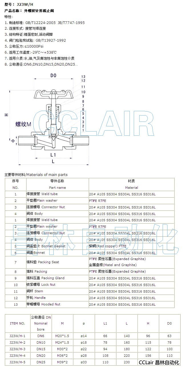 J23W-1,J23W-2,J23W-3,J23W-4,J23W-5, 外螺紋針形截止閥