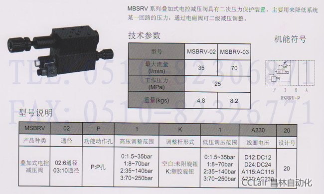 MSBRV-02,MSBRV-03,疊加式電控減壓閥,