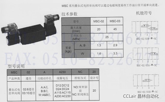 MSC-02W,MSC-02A,MSC-02B,MSC-03W,MSC-03A,MSC-03B,疊加式電控單向閥,生產(chǎn)廠家,價(jià)格