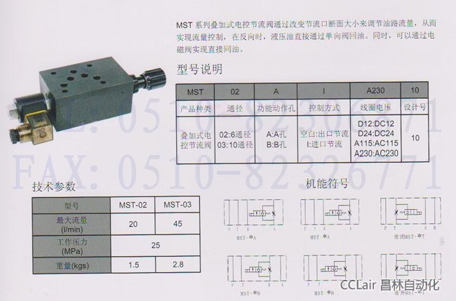 MST-02A,MST-02B,MST-03A,MST-03B,疊加式電控節(jié)流閥,
