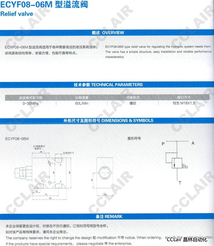 詳細信息 ECYF08-06M,溢流閥