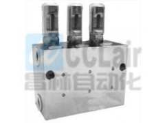 該型分配器適用于公稱壓力為40MPa的雙線式干油集中潤滑系統(tǒng)中,在兩條供油主管交替的供油壓力作用下,直接由供油壓力控制活塞動作給油,完成向潤滑點定量分配潤滑脂的功能。