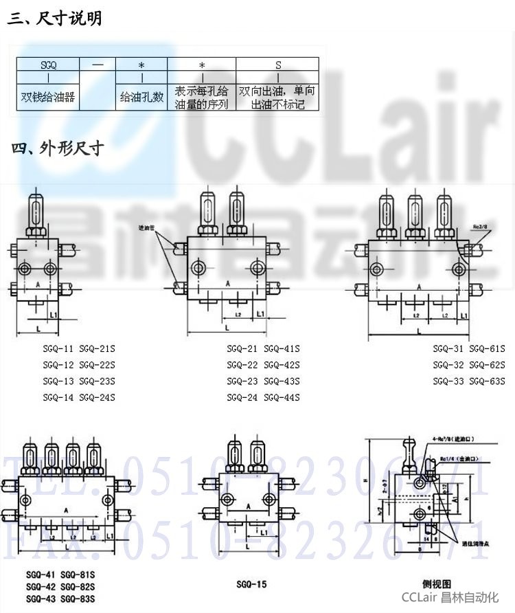 SGQ系列雙線給油器適用于公稱壓力為10MPa的雙線式干油集中潤滑系統(tǒng)中,作為一種計量給油裝置。它在二條供油管交替的供油壓力作用下,由供油壓力推動活塞給油,完成向各潤滑點定量分配潤滑脂的功能。