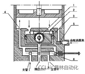 手動潤滑泵供脂是靠人工扳動手柄,通過小齒輪1帶動具有齒條的壓油柱塞2作往復(fù)運動來實現(xiàn)的。當(dāng)柱塞處于(右圖所示)右端極限位置時,左端油腔容積增大形成真空,于是貯油筒內(nèi)的潤滑脂在大氣和活塞壓力的作用下進入左端油腔內(nèi)。當(dāng)柱塞向左移動時,擠壓潤滑脂頂開單向閥4經(jīng)換向閥進入輸油主管Ⅱ內(nèi);此時,柱塞右端油腔容積逐漸增大,潤滑脂被吸入,在柱塞返回向右移動時,充滿潤滑脂的油腔又逐漸變小,這樣擠壓潤滑脂,頂開單向閥3經(jīng)換向閥流進輸送主管Ⅱ。供油過程中的換向是通過換向閥6實現(xiàn)的。當(dāng)把換向閥手柄拉出時,潤滑脂從主管Ⅱ排出;當(dāng)把換向閥手柄推進時,則潤滑脂從主油管Ⅰ排出。 |