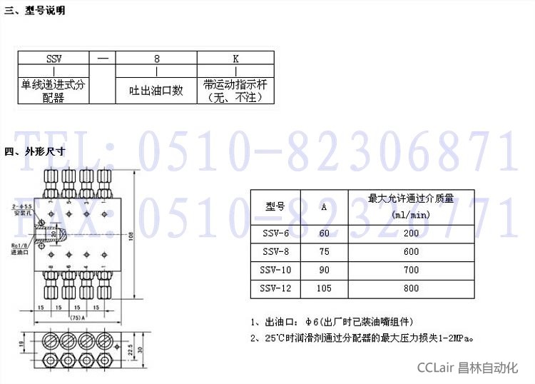 SSV系列單線遞進(jìn)式分配器適用于公稱(chēng)壓力為30MPa以下的單機(jī)或小型干稀油單線集中潤(rùn)滑系統(tǒng)中。它靠殼體內(nèi)部的活塞將由入口輸入的潤(rùn)滑劑以預(yù)定的量可靠地和強(qiáng)制性地分配。該型分配器左右兩側(cè)均有吐出油口,不同吐出口數(shù)的安裝尺寸相同,吐出口派生合并增大給油量與手動(dòng)、氣動(dòng)或電動(dòng)潤(rùn)滑泵相連接可組成簡(jiǎn)單,費(fèi)用低廉的小型集中潤(rùn)滑系統(tǒng),也可與大型集中潤(rùn)滑系統(tǒng)中的單線或雙線分配器連接作為輔助分配器進(jìn)行二級(jí)分配。