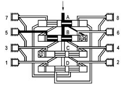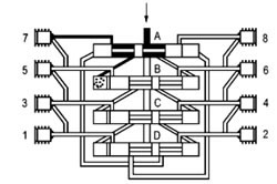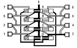 六、使用說(shuō)明 1、在系統(tǒng)中推薦最多通過(guò)“兩級(jí)”來(lái)進(jìn)行潤(rùn)滑劑的分配。 2、排出油口1和2始終不能關(guān)閉。 3、始終使用原配的排出油口油嘴零件組。 4、裝拆調(diào)換油嘴零件時(shí)要從每側(cè)的上部或最下部吐出口開(kāi)始。 5、如果吐出口要補(bǔ)充關(guān)閉,合并潤(rùn)滑劑量(改流到下面低數(shù)的吐出口排出),必須去掉油嘴體,用M10×1螺塞封堵按下圖范例連接。 |