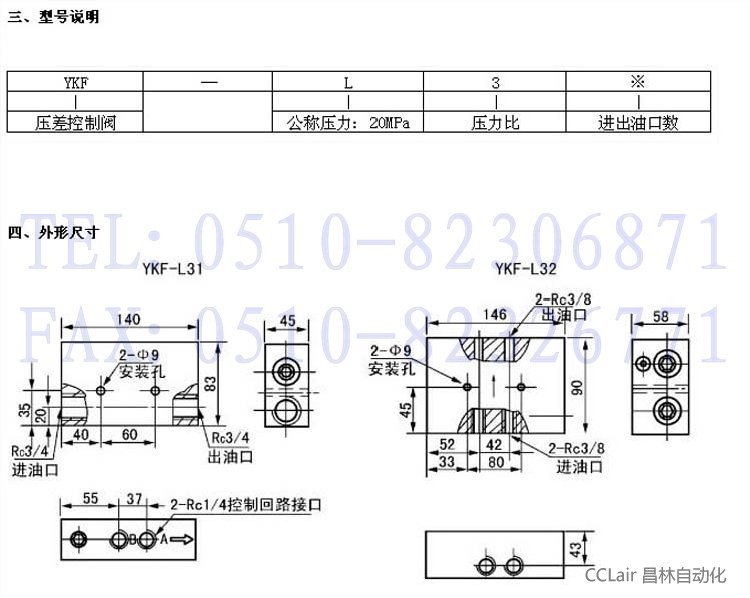 3、YKF-L31型2個(gè)與1個(gè)YHF-L1型液壓換向閥組合;YKF-L32 型1個(gè)與1個(gè)YHF-L2型液壓換向閥或YKF-L4型壓力操縱閥組合。