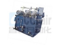 本油站為整體式,由油箱、兩臺低壓油泵、一臺高壓油泵、二臺雙筒網(wǎng)片式過濾器、回油磁網(wǎng)過濾裝置、列管式油冷卻器、各種控制閥門、管道以及電接點壓力表、鉑熱電阻等組成。 工作原理基本上也和A系列相同;但B系列的低壓油經(jīng)過過濾和冷卻后外供時,一部分低壓油通過旁路再經(jīng)過一個雙筒過濾器后才進入高壓泵的吸油口,以提高高壓油的清潔度等級;但應注意當?shù)蛪汗┯蛯嶋H壓力較小時(例如小于0.2MPa時),由于后一過濾器同樣也有壓差損失(也隨時間逐步增大),為保證高壓油泵順利吸入,吸入口應始終保證正壓(當后過濾器切換前壓差達最大時也必須滿足這一要求);除 流量和A系列有很大不同外,最主要特點(結構特征)為高壓泵吸口前有另一臺過濾器。 其他工作原理和操作控制可參見A系列所述。 |