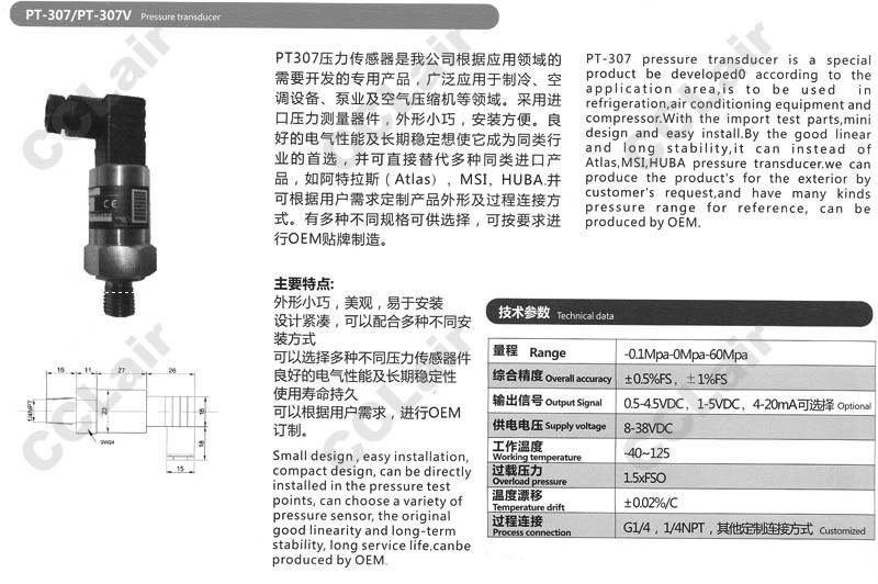 詳細(xì)信息 PT-307,PT-307V,壓力傳感器