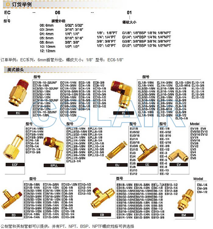 EL1/8-10,EL1/4-10,EL3-1/8,EL4-1/8,EL5-1/8,EL6-1/4,EL8-3/8,EL10-1/8,美式接頭