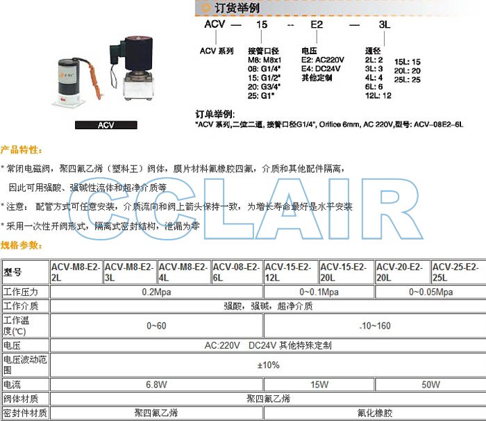 詳細信息 ACV-M8-E2,ACV-08-E4,ACV-15-E2,ACV-20-E4,ACV-25-E2,電磁閥