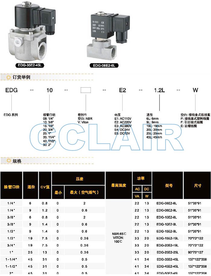 詳細信息 EDG-08E1,EDG-10E2,EDG-15E3,EDG-20E4,EDG-25E5,EDG-35E4,EDG-40E3,煤氣電磁閥