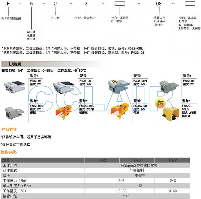 詳細(xì)信息 F522C08L,F422C08L,F322C08L,F522C08N,F422C08N,F322C08N,F522C08LB,腳踏閥