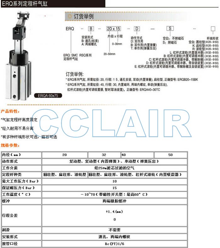 詳細信息 ERQB20X15D,ERQA32X15D,ERQB40X15B,ERQA50X15,ERQB20X15T,ERQA32X15T,定程桿氣缸