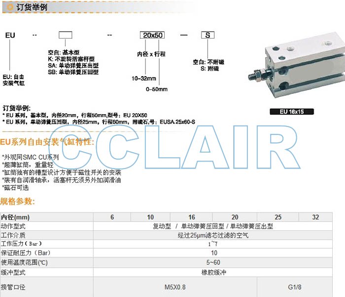 詳細(xì)信息 EU6X50,EUSB6X50,EUK10X50,EU16X50,EU20X50,EU25X50,EU32X50,薄型氣缸