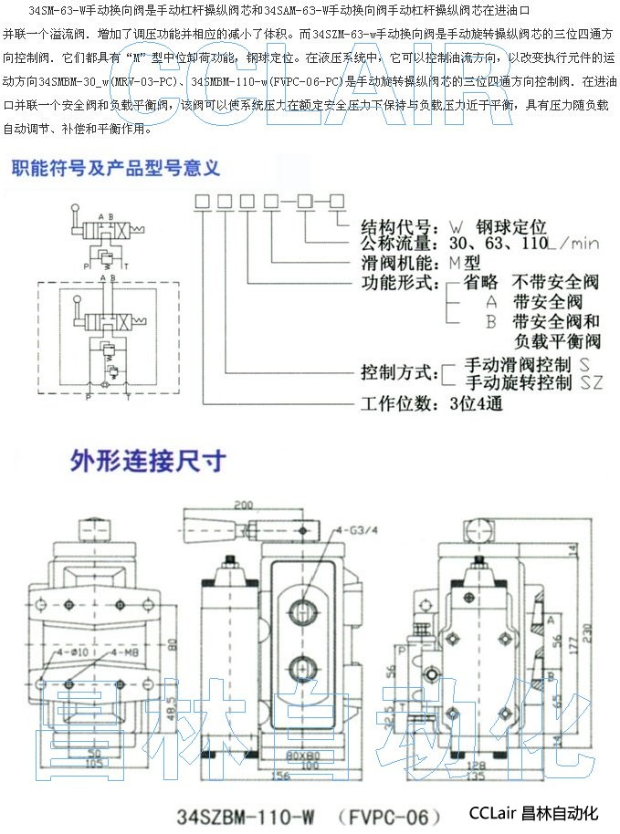 詳細(xì)信息 34SZBM-110-W,34SZM-110-W,34SBM-110-W,34SZM-30-W,34SM-63-W,34SAM-63-W,手動(dòng)換向閥
