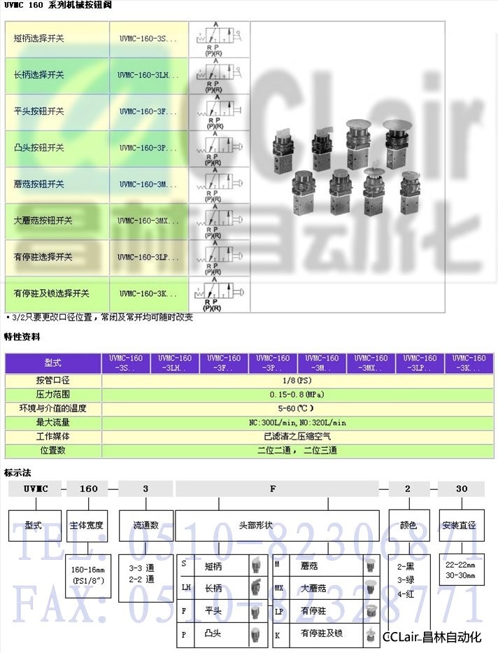 詳細(xì)信息 UVMC-160-3S,UVMC-160-3LH,UVMC-160-3F,UVMC-160-3P,機(jī)械按鈕閥