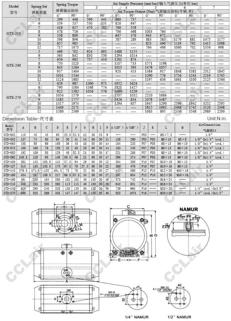 詳細(xì)信息 UNIWO,GTE-052,GTE-063,GTE-075,GTE-083,GTE-092,GTE-108,GTE-127,GTE-143,GTE-160,氣動(dòng)執(zhí)行器