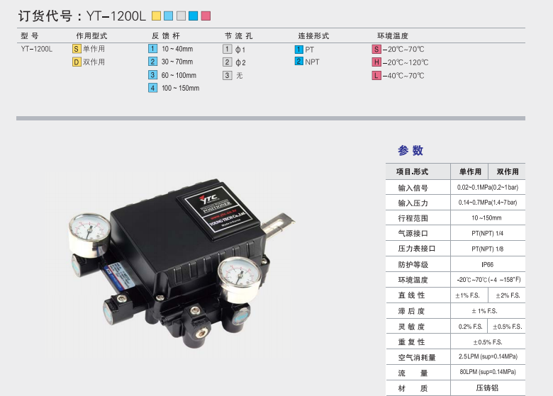 YT-1200LS1,YT-1200LS2,YT-1200LS3,YT-1200LS4,氣動閥門定位器