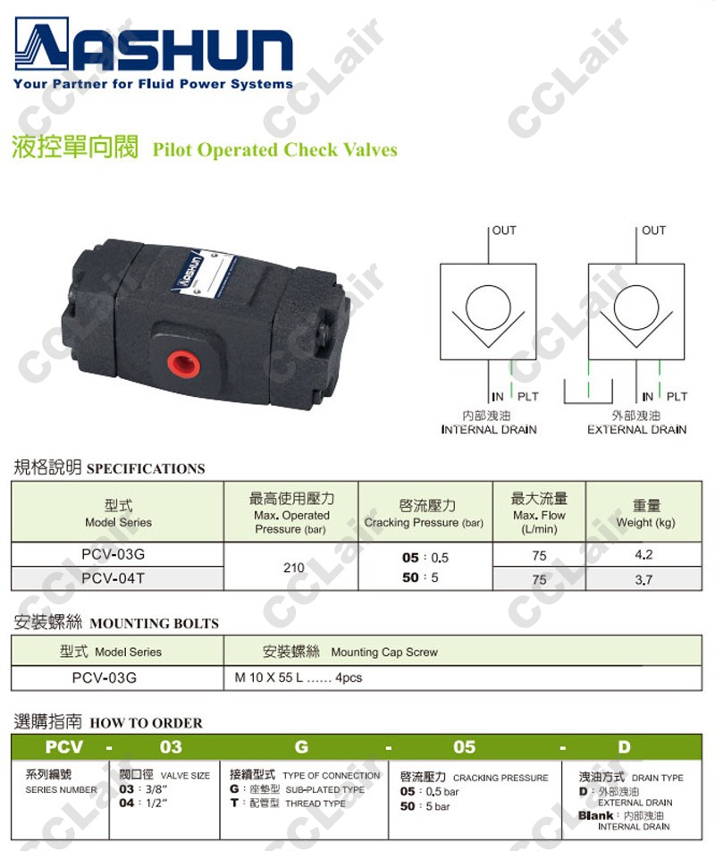 詳細信息 PCV-03G-05-D,PCV-03G-50-D,PCV-04T-05-D,PCV-04T-50-D,ASHUN油順液控換向閥