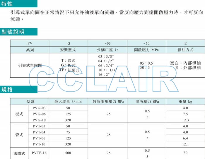 詳細(xì)信息 PVG-03,PVG-04,PVG-06,PVG-10,PVG-16,引導(dǎo)式單向閥