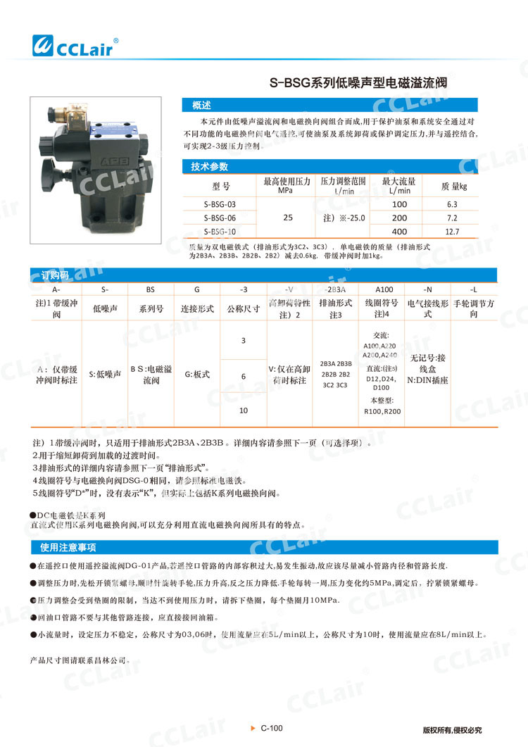 S-BSG-03,S-BSG-06,S-BSG-10,S-BSG-10-3C3-R200-L,S-BSG-03-2B3A-A100-N-L,低噪聲型電磁溢流閥