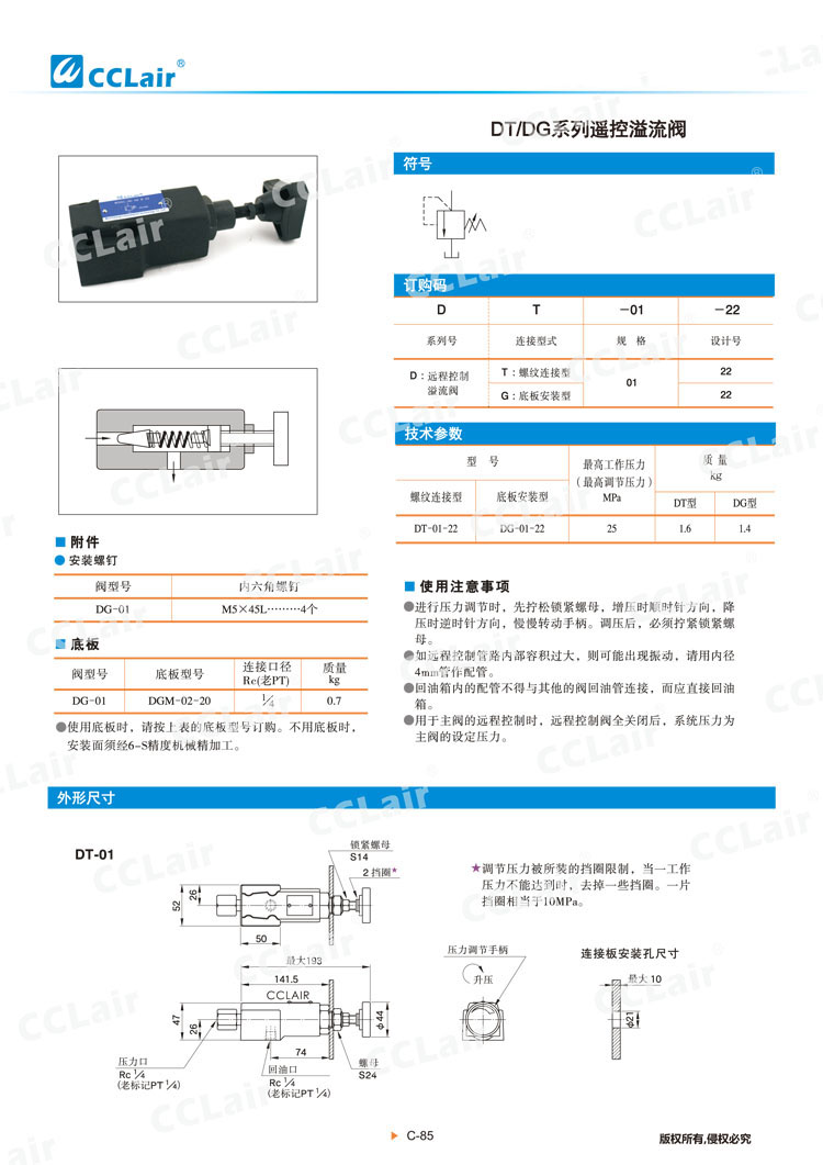 詳細信息 DT-01-22,DG-01-22,遙控溢流閥
