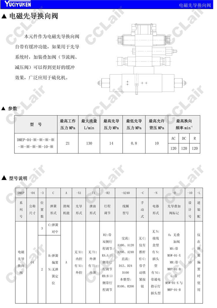 DMEP-04-3CA-X1-R2-A100-C-N-0-10,DMEP-04-3CA-T1-R2-A100-C-N-0-10,電磁先導(dǎo)換向閥