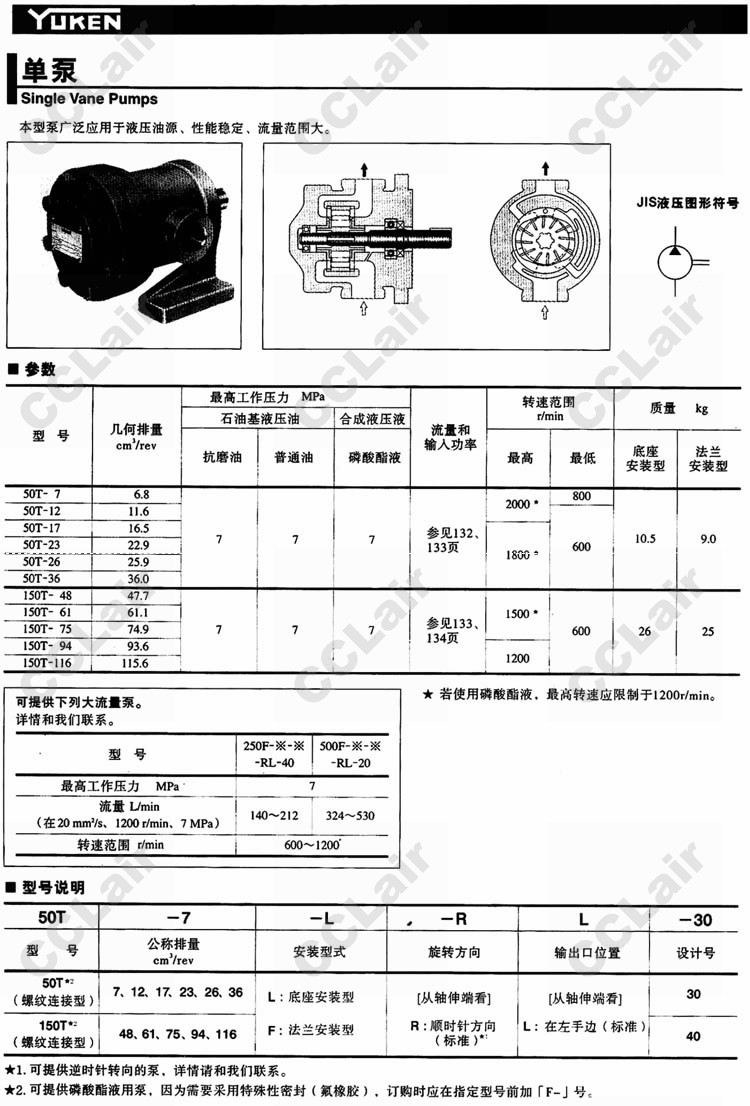 50T,150T,50T-7-L-RL-30,50T-12-L-RL-30,150T-48-L-RL-40,150T-75-F-RL-40,YUKEN,單泵