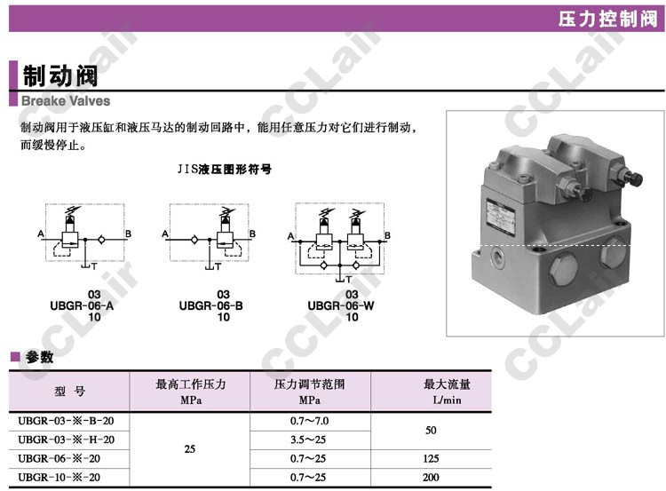 詳細(xì)信息 UBGR-03,UBGR-06,UBGR-10,UBGR-03-A-B-20,UBGR-06-A-20,UBGR-10-A-20,制動閥