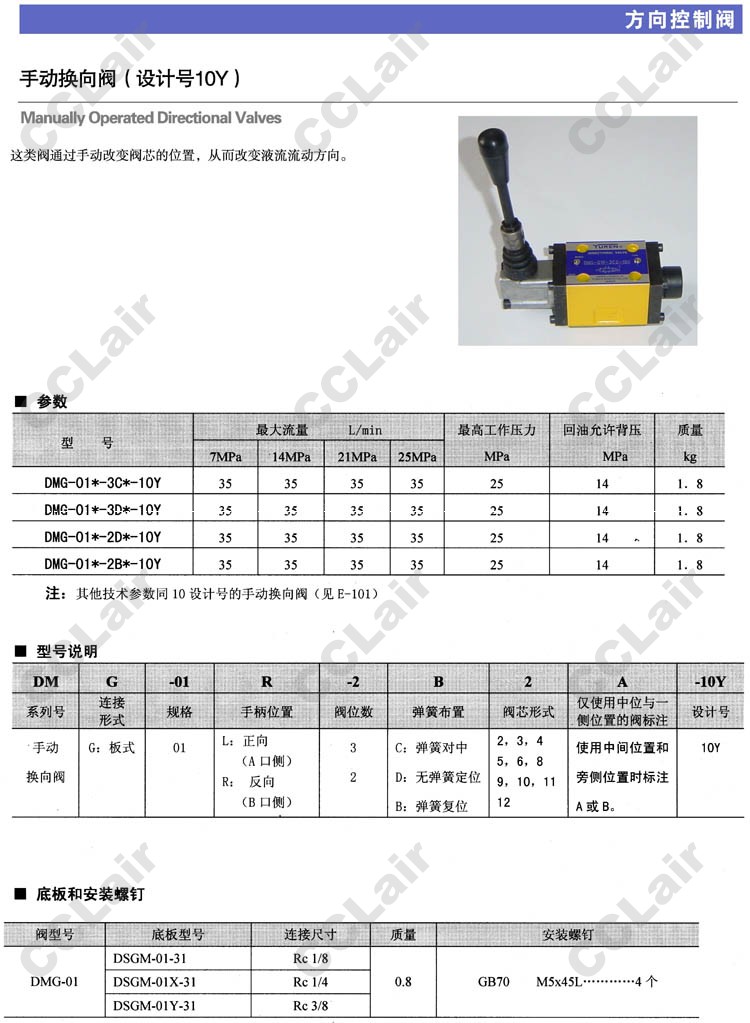 詳細(xì)信息 DMG-01L,DMG-01R,DMG-01L-3C2A-10Y,DMG-01R-3C2B-10Y,手動(dòng)換向閥