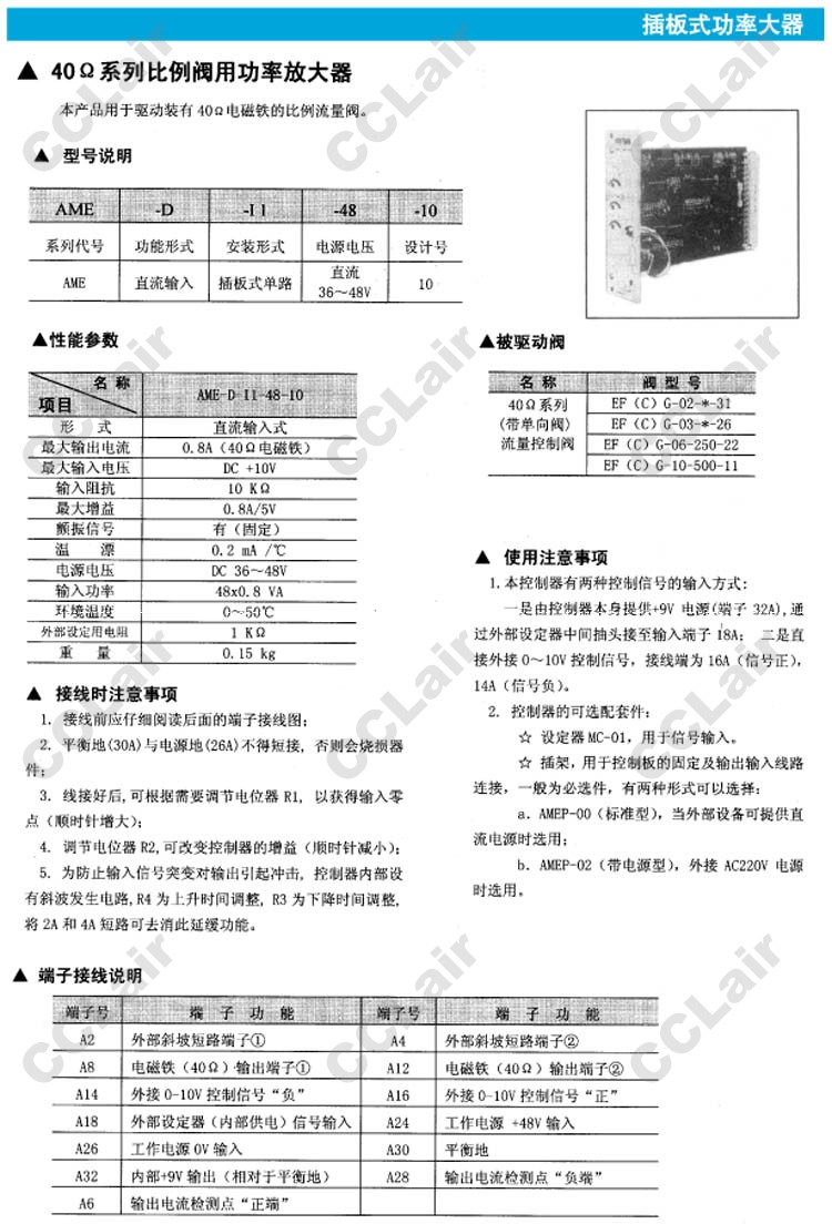 詳細(xì)信息 AME-D-11-48-10,比例閥用功率放大器,YUCIYUKEN榆次油研