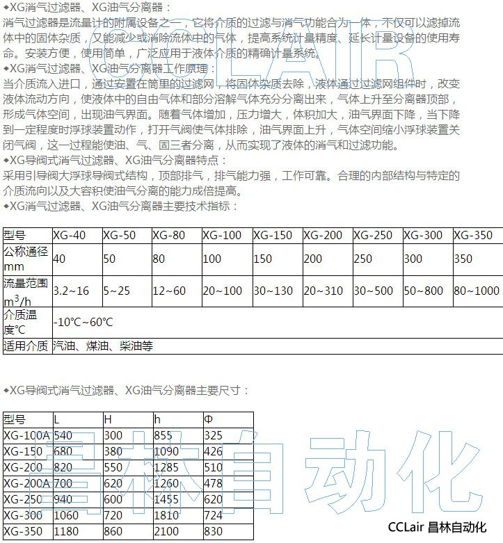 詳細(xì)信息 XG-40,XG-50,XG-80,XG-100,XG-150,XG-200,XG-250,XG-300,消氣過(guò)濾器