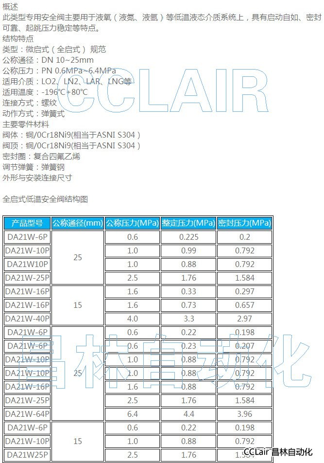 DA21W-6P-DN25,DA21W-10P-DN25,DA21W-25P-DN25,DA21W-16P-DN15,低溫安全閥