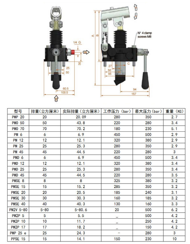 PMP-20,PMP-50,PM-6,PM-12,PMD-6,PMD-12,PMSE-8,PM2V-5,PM2P-5,手動泵