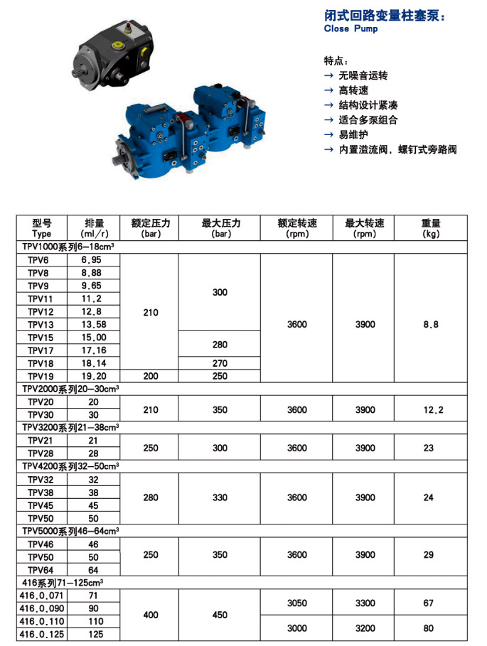 TPV6,TPV8,TPV9,TPV11,TPV12,TPV13,TPV15,TPV17,TPV18,TPV19,TPV20,閉式回路變量柱塞泵