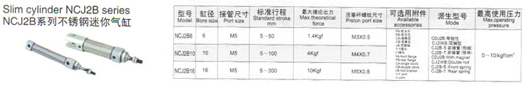 詳細(xì)信息 NCJ2B6,NCJ2B10,NCJ2B16,不銹鋼迷你氣缸