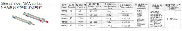 詳細信息 NMA16,NMA20,NMA25,NMA32,NMA40,不銹鋼迷你氣缸
