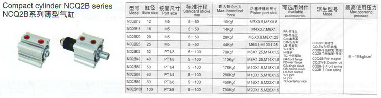 詳細(xì)信息 NCQ2B12,NCQ2B16,NCQ2B20,NCQ2B25,NCQ2B32,NCQ2B40,NCQ2B50,薄型氣缸