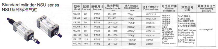 NSU32,NSU40,NSU50,NSU63,NSU80,NSU100,NSU125,NSU160,標準氣缸