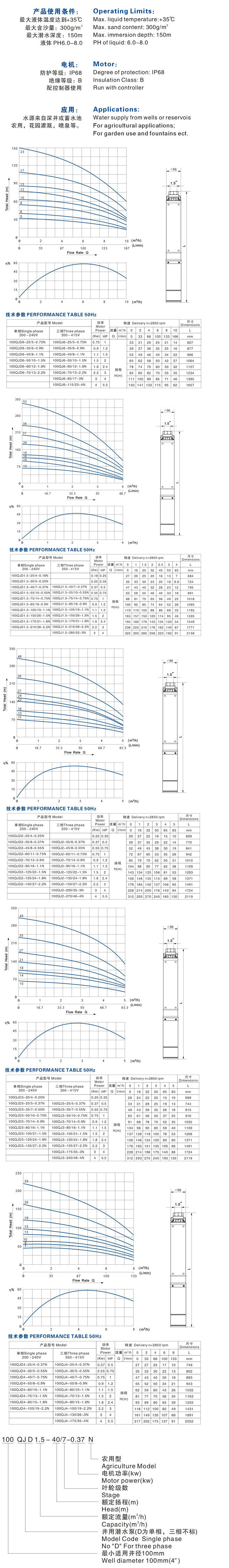 100QJ1.5-40/7-0.37N,100QJ2-35/6-0.37N,100QJ3-25/5-0.37N,100QJ4-25/4-0.37N,100QJ6-70/5-2.2N,井用潛水電泵