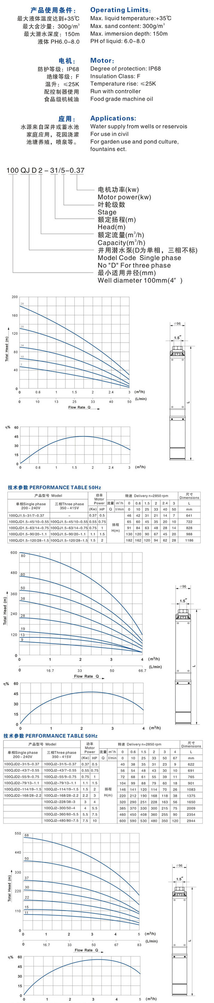 100QJ1.5-31/7-0.37,100QJ2-31/5-0.37,100QJ3-36/6-0.55,100QJ5-30/5-0.75,100QJ8-27/6-1.1,100QJ10-20/5-1