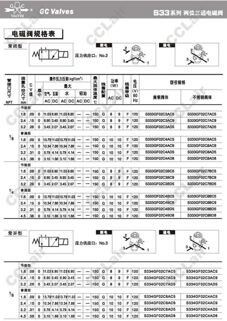 S333GF02C,S334GF02C,S336GF02C,S336GF02C3BD5,S336GF02C4BD8,S336GF02C4BC9,GC Valves二位三通直動式電磁閥