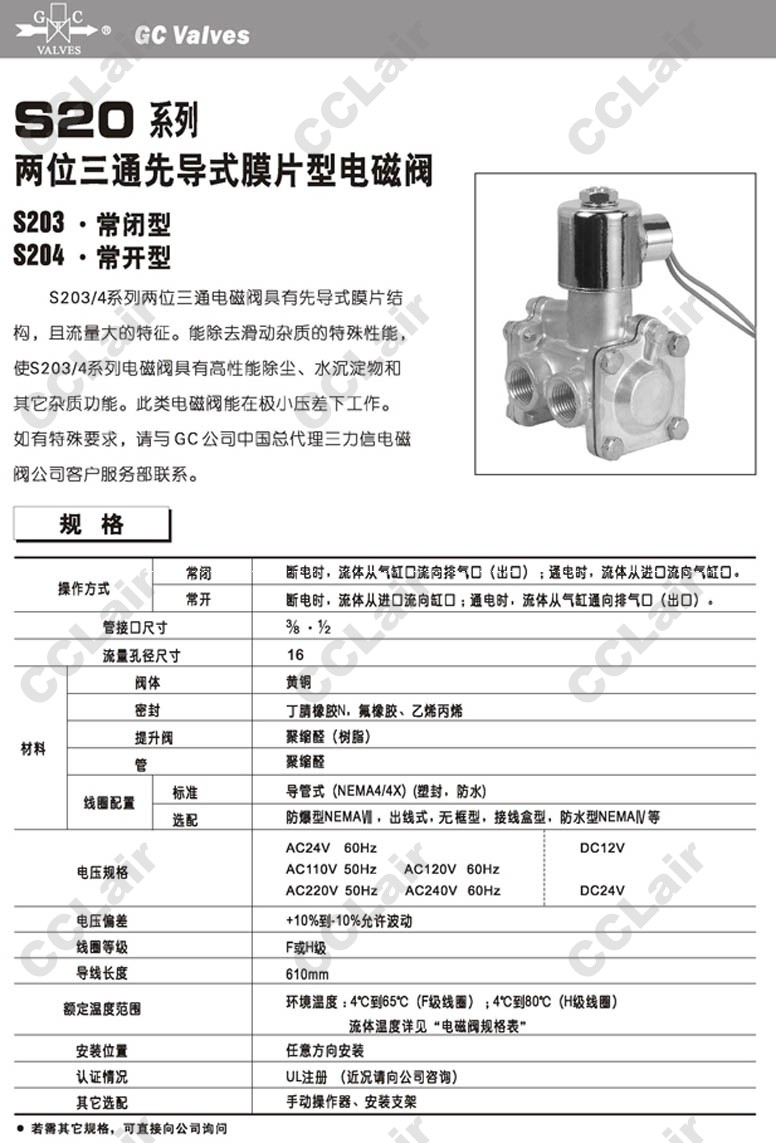 S203GF02C,S203GF02V,S203GF02N,S204GF02C,S204GF02V,S204GF02N,S203GF02N5DG4,GC Valves二位三通先導(dǎo)式膜片電磁閥