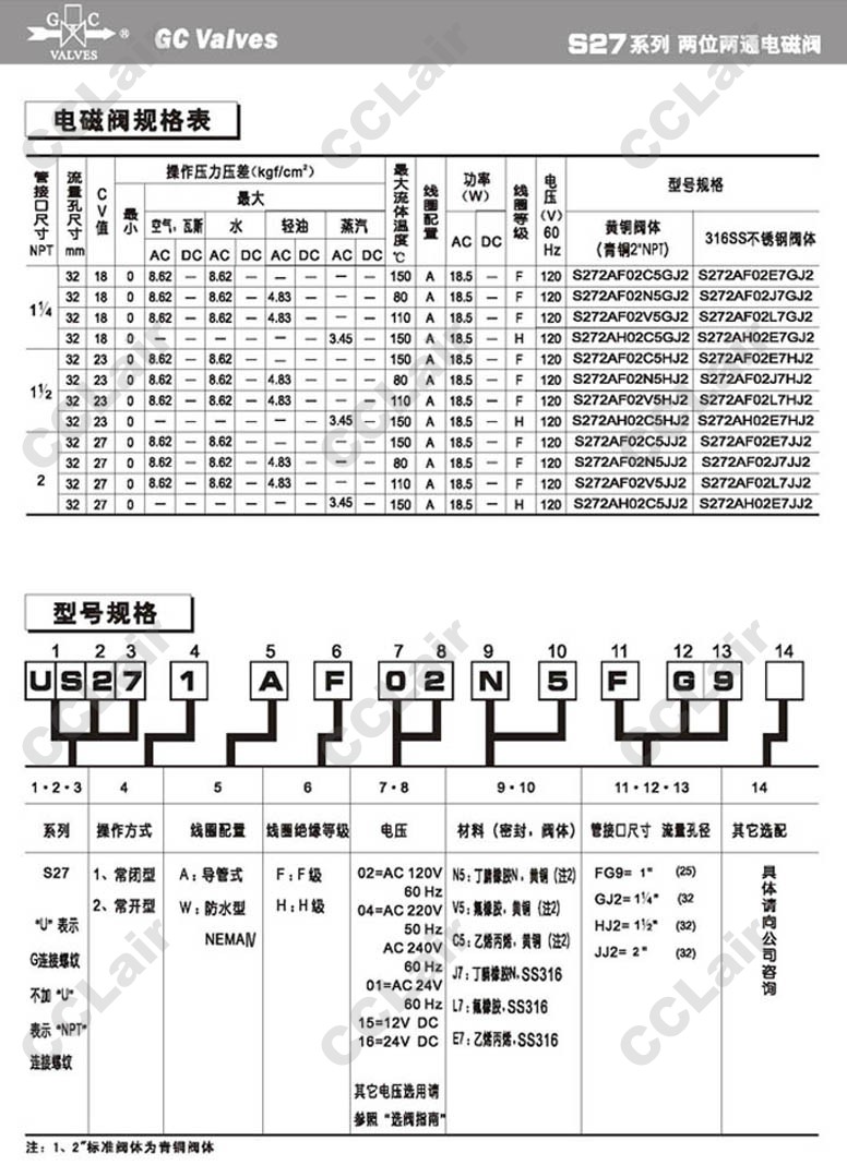 S271AF02,S272AF02,S271AH02,S272AH02,S272AH02E7JJ2,S271AH02E7GJ2,S271AF02C7FG9,GC Valves二位二通零壓差電磁閥