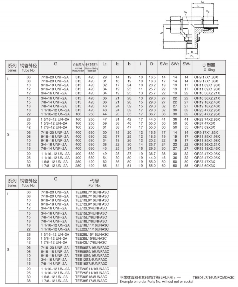TEE28L15/16UNA3C,TEE35L15/8UNA3C,TEE42L17/8UNA3C,TEE06S7/16UNFA3C,
