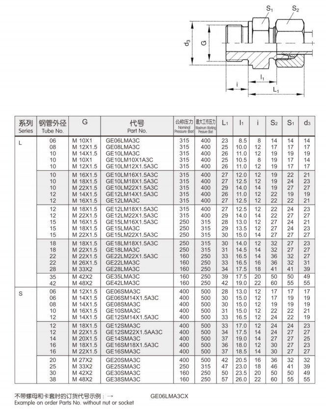 GE06LMA3C,GE15LMA3C,GE16SMA3C,GE10LM12X1.5A3C,直通接頭