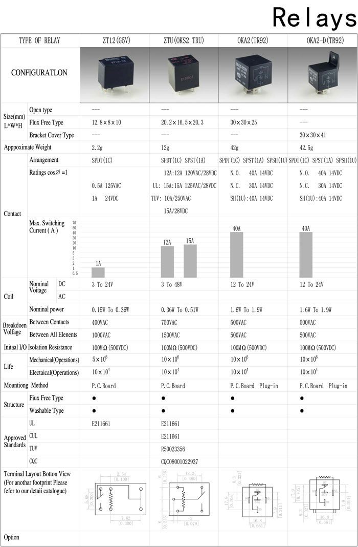 ZT12(G5V),ZTU(OKS2 TRU),OKA2(TR92),OKA2-D(TR92),電磁繼電器